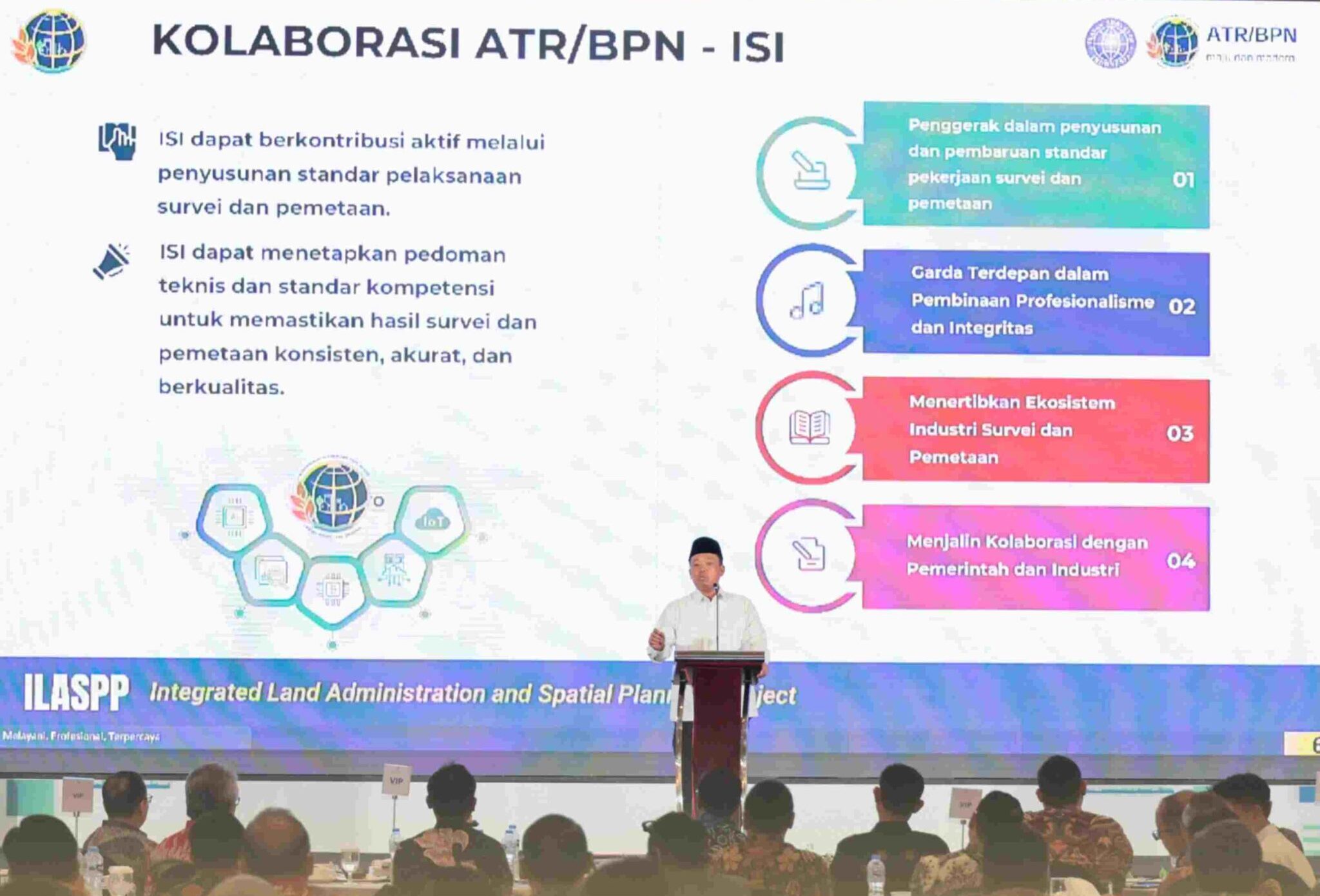 Arahan tersebut menjadi relevan dalam konteks pelaksanaan Integrated Land Administration and Spatial Planning Project (ILASPP) 2025 yang menempatkan data spasial sebagai landasan utama dalam perencanaan dan pengambilan keputusan pembangunan. Program yang didukung oleh Bank Dunia itu melibatkan peran penting para surveyor dalam menghasilkan data spasial yang andal untuk mendukung perencanaan pembangunan nasional.